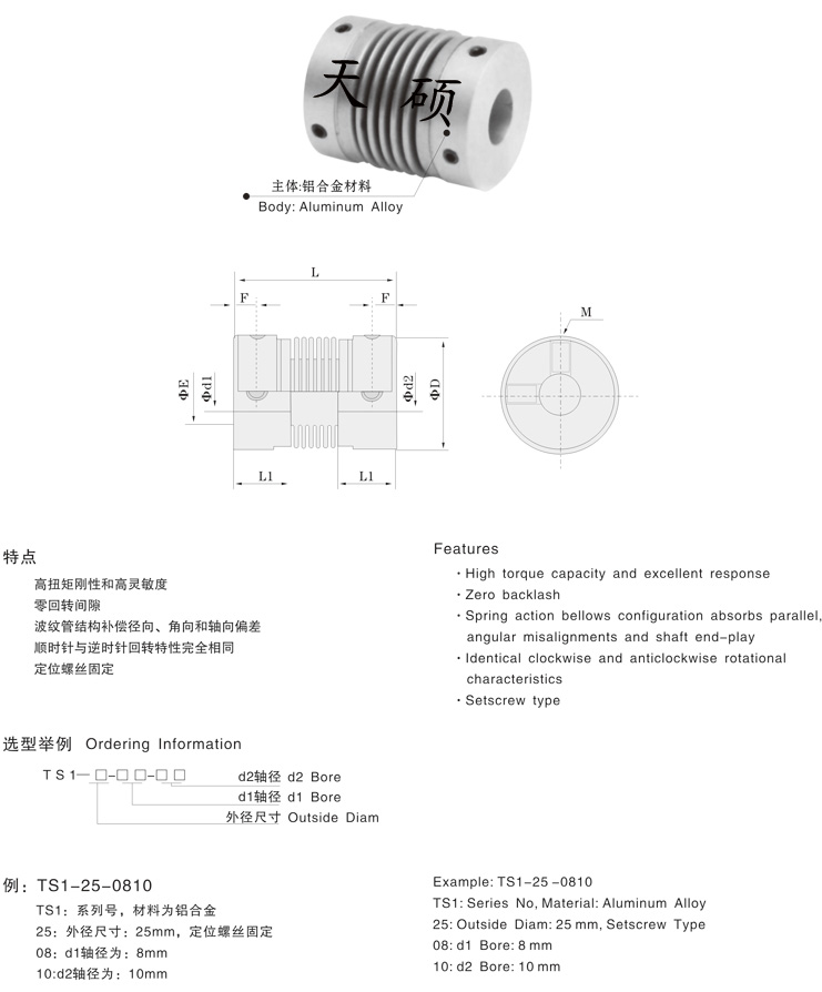 1.波紋管聯(lián)軸器無間隙,高靈敏度