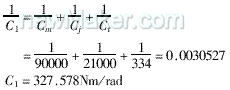第二步:計(jì)算爪形聯(lián)軸器或波紋管聯(lián)軸器時(shí)傳動(dòng)系統(tǒng)的剛度:爪形聯(lián)軸器總的剛度