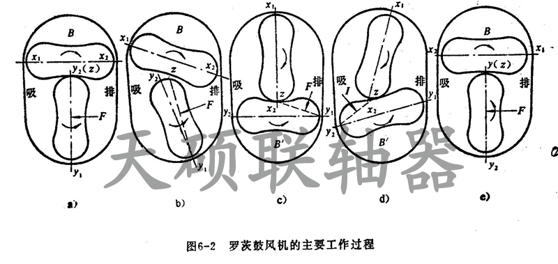 兩葉羅茨風機的工作原理:
