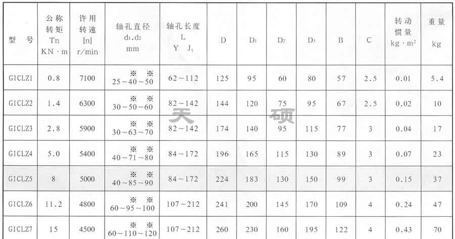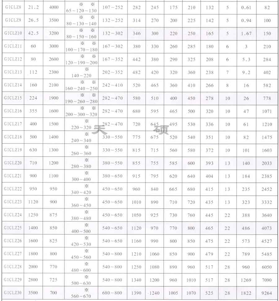 GⅠCLZ型鼓形齒式聯軸器基本參數和主要尺寸