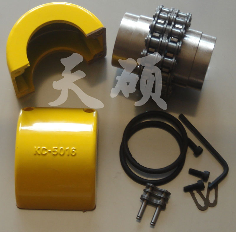 ●特點:鏈條聯(lián)軸器是利用公用的鏈條,同時與兩個齒數(shù)相同的并列鏈輪嚙合,不同結(jié)構(gòu)型式的鏈條聯(lián)軸器主要區(qū)別是采用不同的鏈條,常見的有雙排滾子鏈聯(lián)軸器、單排滾子鏈聯(lián)軸器、齒形鏈聯(lián)軸器、尼龍鏈聯(lián)軸器等。雙排滾子鏈聯(lián)軸器性能優(yōu)于其他結(jié)構(gòu)型式的聯(lián)軸器,為國內(nèi)外廣泛采用(KC系列鏈輪聯(lián)軸器),我國亦已制訂為國家標(biāo)準(zhǔn)(GB6069-86) 。