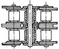 圖8-5 齒形鏈 a) 軸瓦式齒形鏈 b) 滾柱式齒形鏈 |