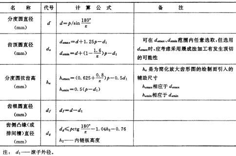 表8–2 滾子鏈鏈輪主要尺寸計算