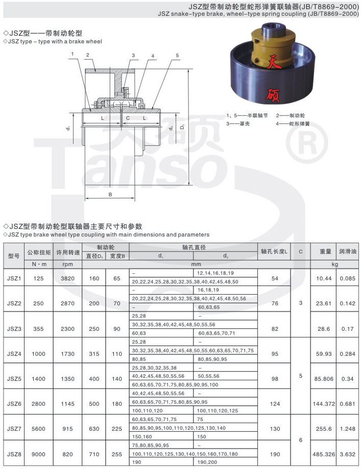 JSZ型--帶制動輪型聯(lián)軸器,連軸器,蛇形彈簧聯(lián)軸器