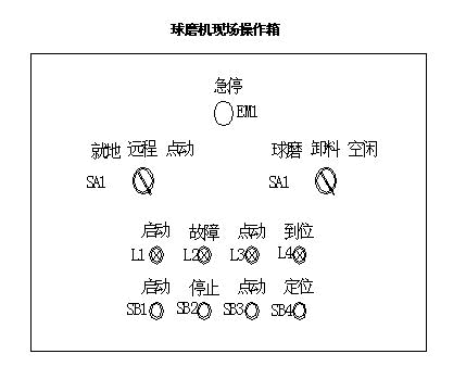 現場操作箱雖處于控制系統的最底層,但卻是系統最重要的一個組成部分。操作人員通過操作箱上的按鈕、轉換開關、指示燈來控制球磨機的運行。在設備處于檢修狀態時,可通過上面的轉換開關將設備臨時脫離控制,保證設備的安全可靠。現場操作箱如下圖2所示: