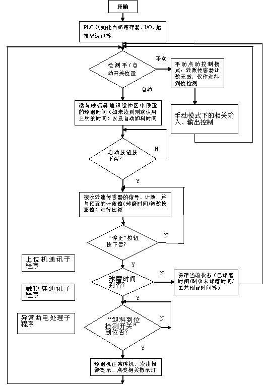 (3)根據設定的工藝時間精確控制球磨機的啟動、停止及卸料等操作,能自動進行各種故障判斷。
