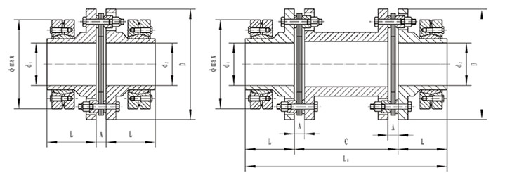 膜片聯軸器應用舉例 膜片聯軸器可以制成的各種形式