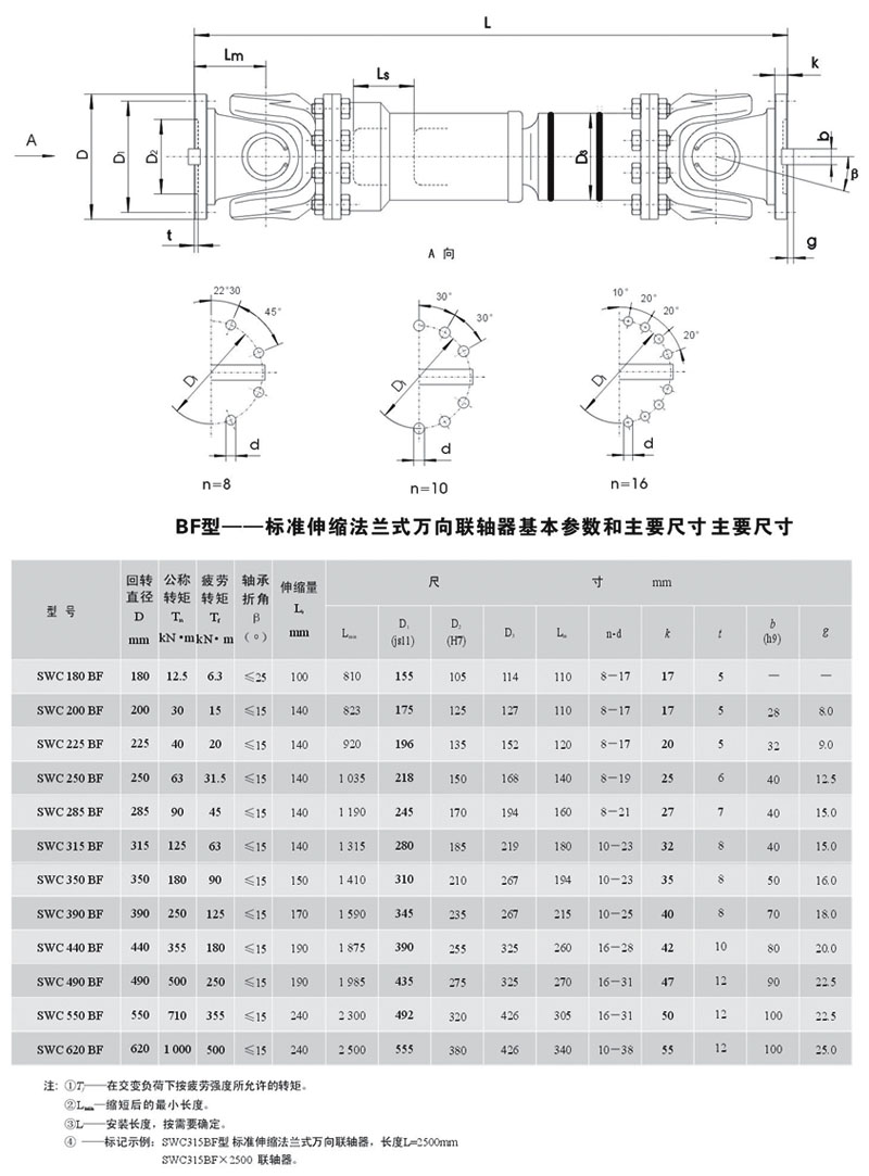 SWC-BF型標準伸縮法蘭式萬向聯軸器
