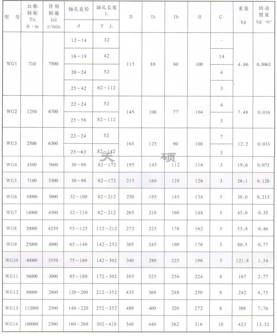 WG Ⅱ型-鼓形齒式聯(lián)軸器基本參數(shù)和主要尺寸 mm