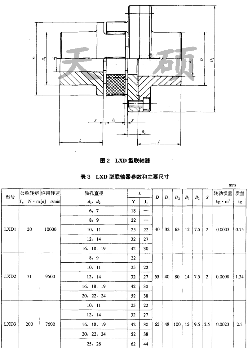 XLD系列星形彈性聯(lián)軸器基本性能參數(shù)和主要尺寸