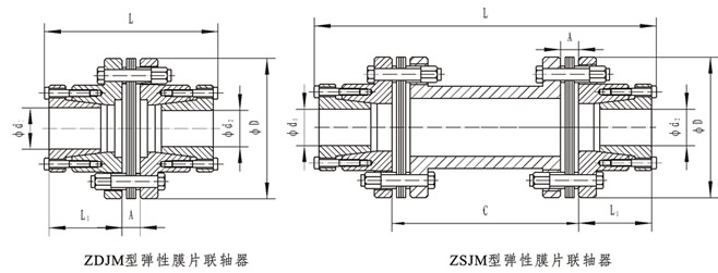 ZDJM型帶錐套雙型彈性膜片聯軸器
